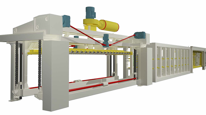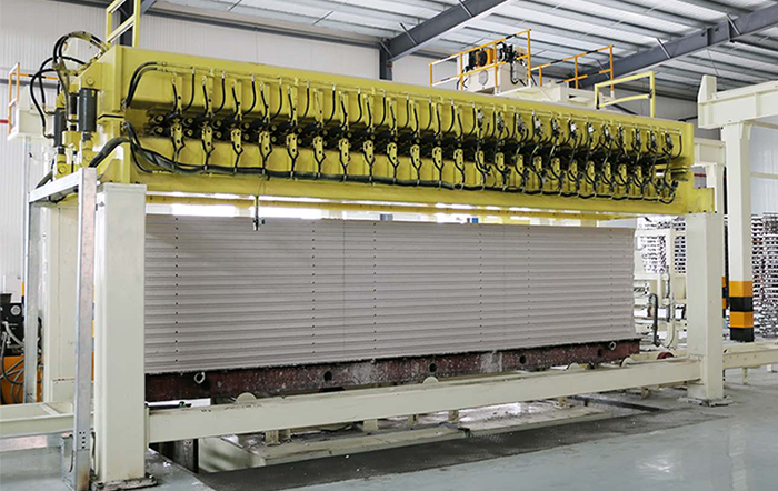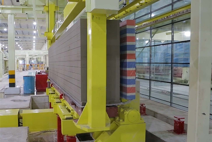 切割機(jī)組是加氣板材生產(chǎn)線的核心設(shè)備,用于切割不同尺寸的坯體,滿足超精確砌塊和板材的切割精度要求,生產(chǎn)板材時(shí)配合板材進(jìn)給刮刀,調(diào)節(jié)側(cè)面切割機(jī)的刮刀行程,可以滿足不同尺寸制品的混合切割。