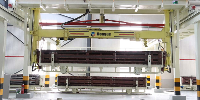 加氣板材經(jīng)過(guò)蒸壓釜,坯體獲得最終的強(qiáng)度和性能。出釜后的產(chǎn)品,通過(guò)東岳最新研發(fā)的掰板打包系統(tǒng),不但提高產(chǎn)品合格率同時(shí)解決了砌塊、板材同時(shí)分離的難題。