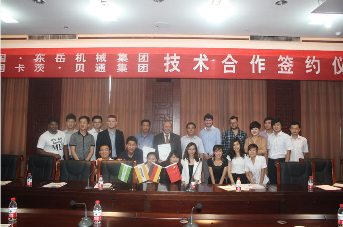 6月17日,在沂南縣智圣湯泉舉行中國(guó)東岳機(jī)械集團(tuán)與德國(guó)卡茨·貝通集團(tuán)技術(shù)合作簽約儀式,標(biāo)志這東岳機(jī)械集團(tuán)引進(jìn)德國(guó)加氣混凝土設(shè)備技術(shù)取得實(shí)質(zhì)性進(jìn)展。出席此次加氣混凝土設(shè)備技術(shù)合作簽約儀式的領(lǐng)導(dǎo)有臨沂市人大常委會(huì)副主任馮安、市政府副市長(zhǎng)馬崑、市政協(xié)副主席劉繼雙,縣領(lǐng)導(dǎo)劉淑秀、鞠艷峰、黃寶傳、吳昌力、唐音波、葛繼勇、王富余、劉振奎、張德新、蔣學(xué)華、王景良出席簽約儀式。