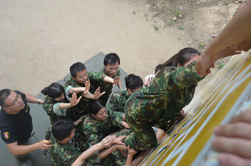 此次拓展主要是以提高員工的綜合素質(zhì)、團(tuán)隊(duì)意識,促進(jìn)員工的成長為目的。為了使拓展收到切實(shí)效果,讓每個(gè)參加活動(dòng)的員工都能在活動(dòng)中充分體驗(yàn)和感受活動(dòng)內(nèi)容凸顯出來的團(tuán)隊(duì)精神,在活動(dòng)開始時(shí),教練將員工分成了2個(gè)隊(duì),每個(gè)隊(duì)在隊(duì)長、隊(duì)秘的帶領(lǐng)下確定了自己的隊(duì)名、口號、隊(duì)歌、隊(duì)旗等。在拓展過程中2個(gè)隊(duì)按照項(xiàng)目要求,堅(jiān)持不拋棄不放棄的團(tuán)隊(duì)精神,互幫互助,將每個(gè)人的智慧、力量融入到團(tuán)隊(duì)中,在大家的共同努力下出色的完成了信任背摔、空中斷橋、真人CS、茫茫人海、勝利墻等一項(xiàng)項(xiàng)艱巨而富有挑戰(zhàn)性的項(xiàng)目。